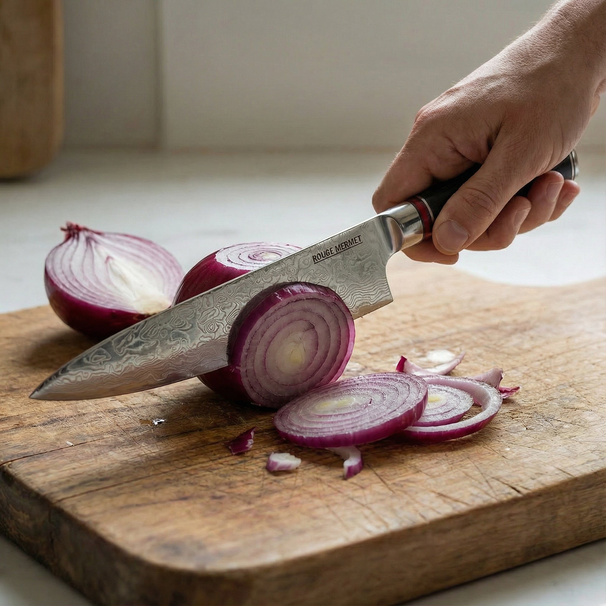 Nous sélectionnons les meilleurs matériaux, comme l'acier damas VG10 et le bois de pakka, pour vous offrir des couteaux aussi élégants que performants. Chaque lame est conçue pour sublimer vos gestes en cuisine et vous accompagner pendant des années.